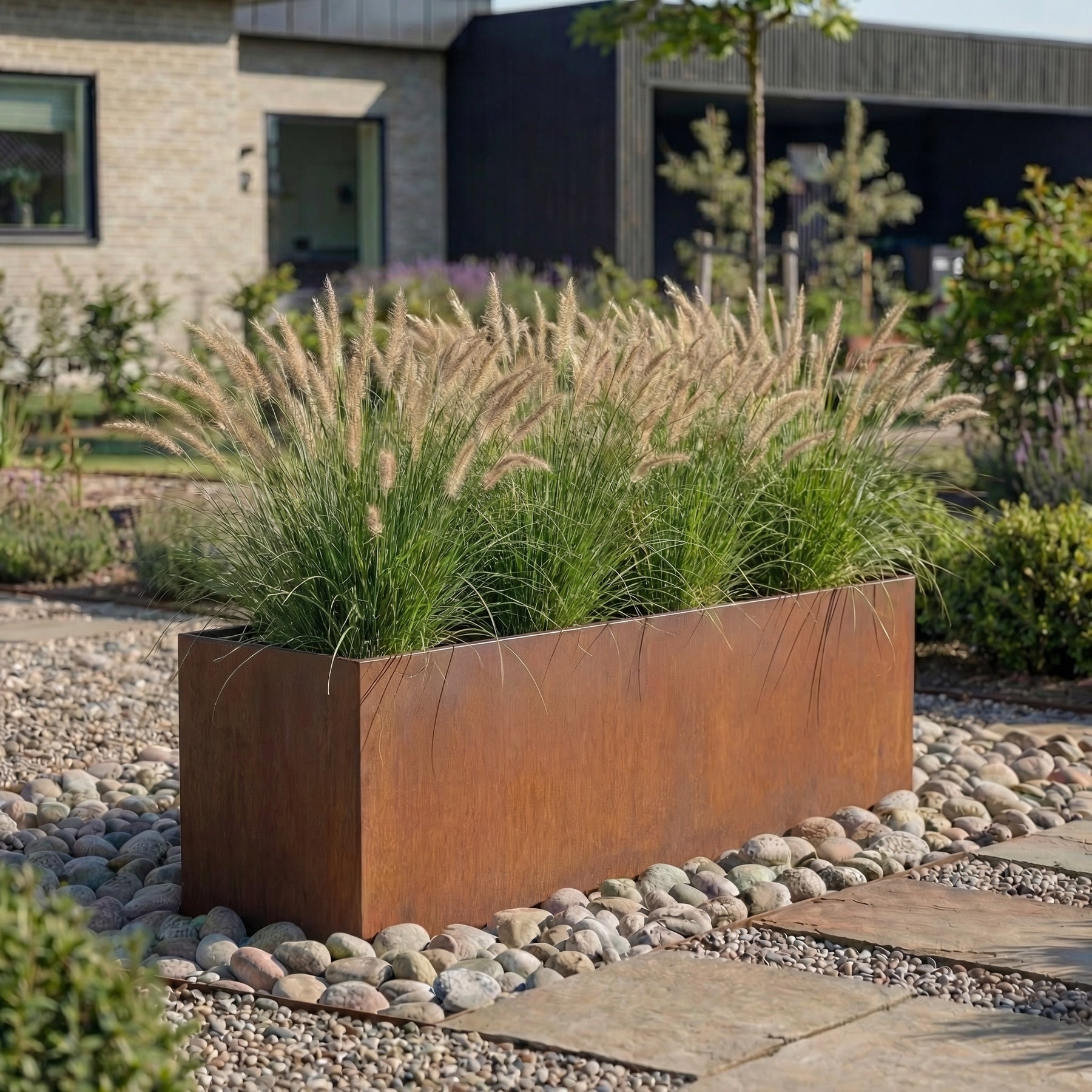 Dette højbed er vores eksklusive 6mm cortenstål model. Bemærk at det er en tung model 48 kg pr m2. Derfor er denne oplagt til brug offentlig eller steder hvor der er forventet slid på bedet og det ikke kan fjernes manuelt.