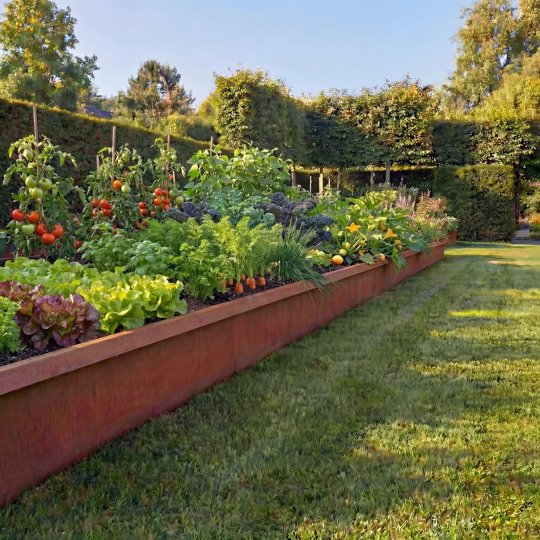 Vores bedafgrænsning/kantafgrænsning i 3 mm cortenstål med sneglekant kombinerer funktion, styrke og et flot patineret udtryk. Den 40 mm udad bukkede kant gør det sværere for snegle at komme ind i dit bed og giver samtidig styrke, så du får helt lige og stabile linjer i haven. Bedafgrænsning med sneglekant er ideel til dig, der ønsker et skarpt og holdbart udtryk.