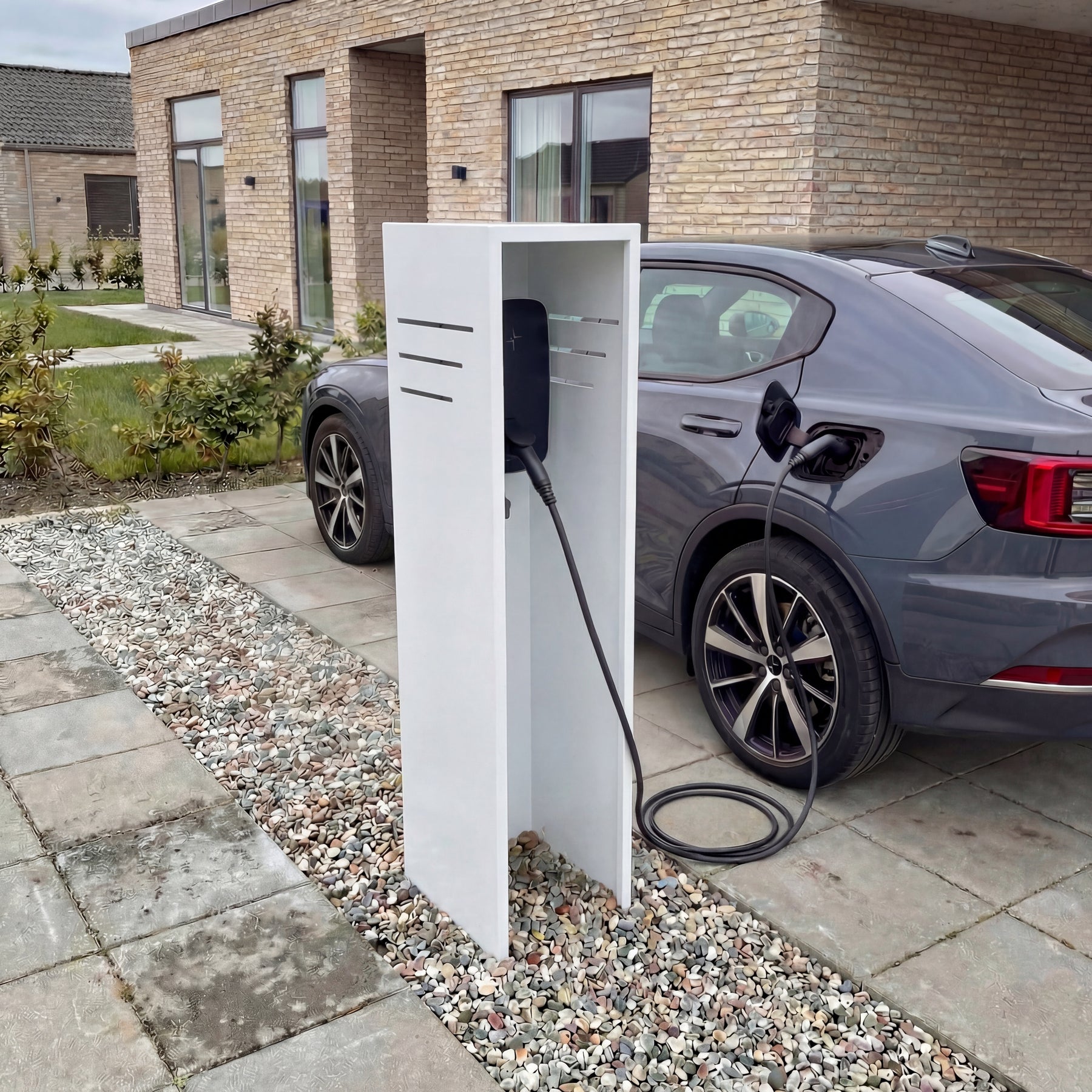 Denne stander giver dig friheden til at placere din ladestation præcis, hvor det giver bedst mening for din hverdag, uden at være afhængig af en husmur.