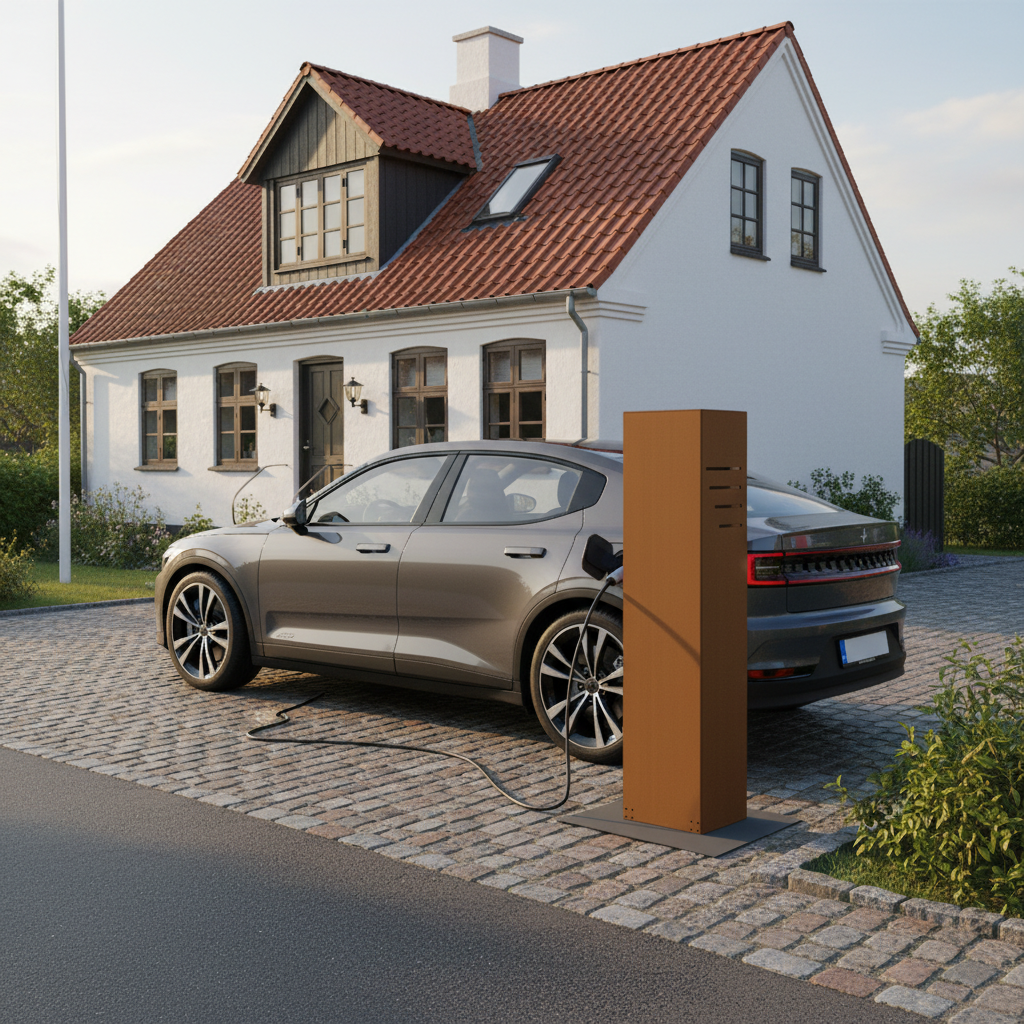 Fritstående stander til ladeboks i cortenstål