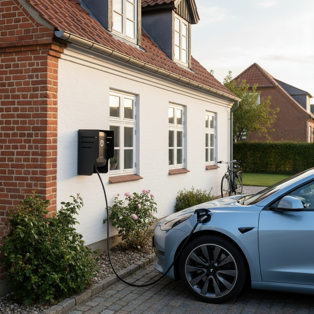 - Ekstraudstyr – Kabelholder: Du kan efter ønske bestille en matchende ophængskrog til praktisk opbevaring af dit ladekabel.