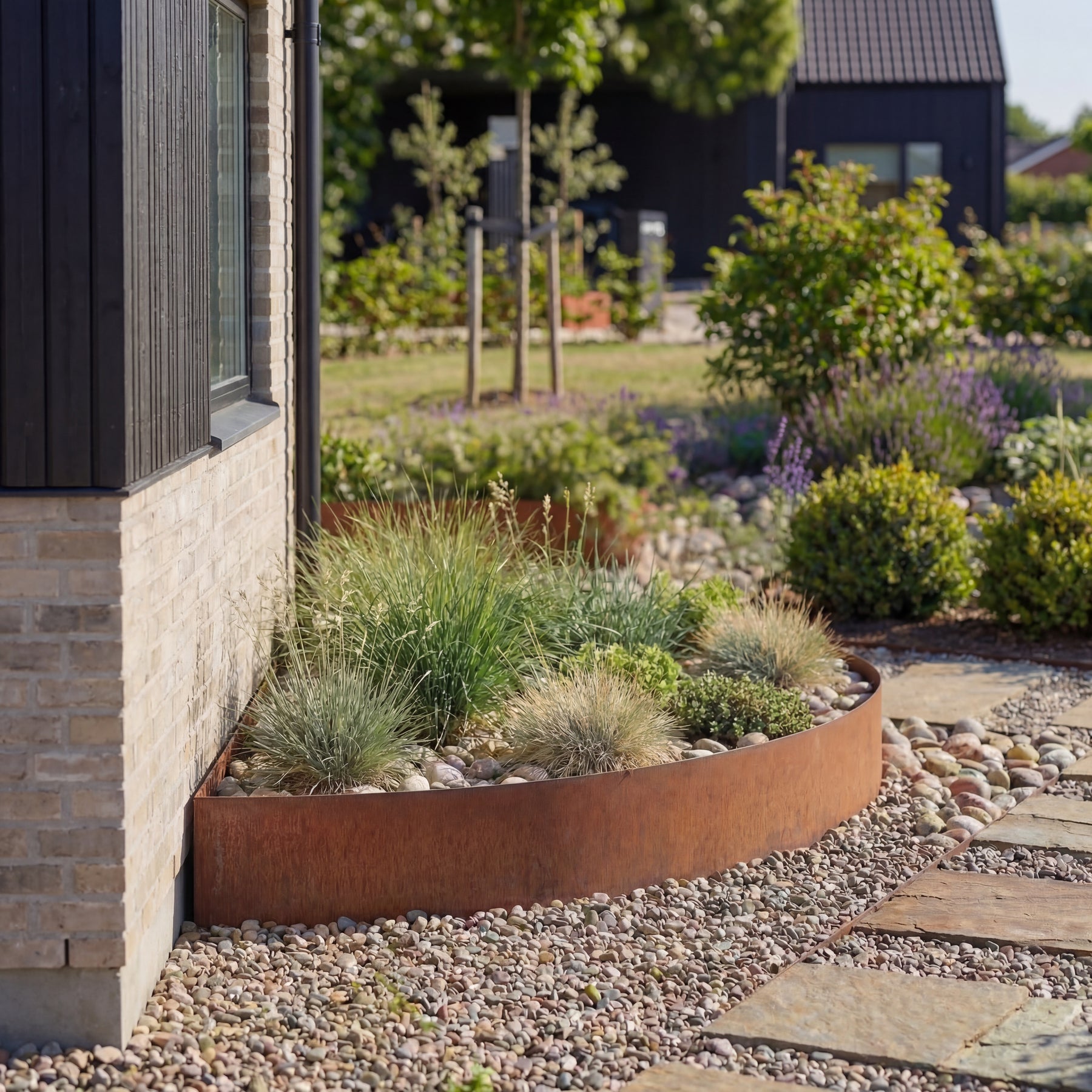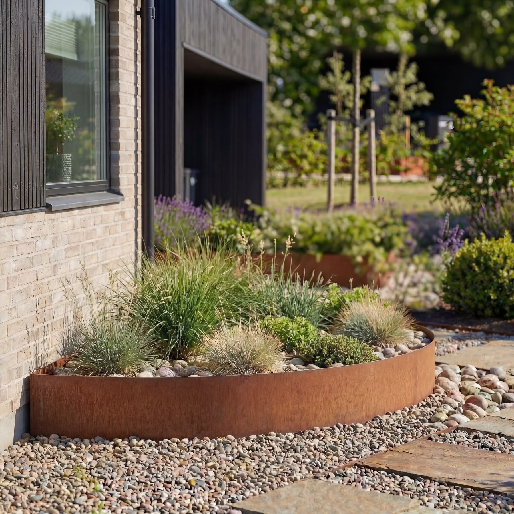 Halvcirkel i 3 mm cortenstål og 15cm højt.