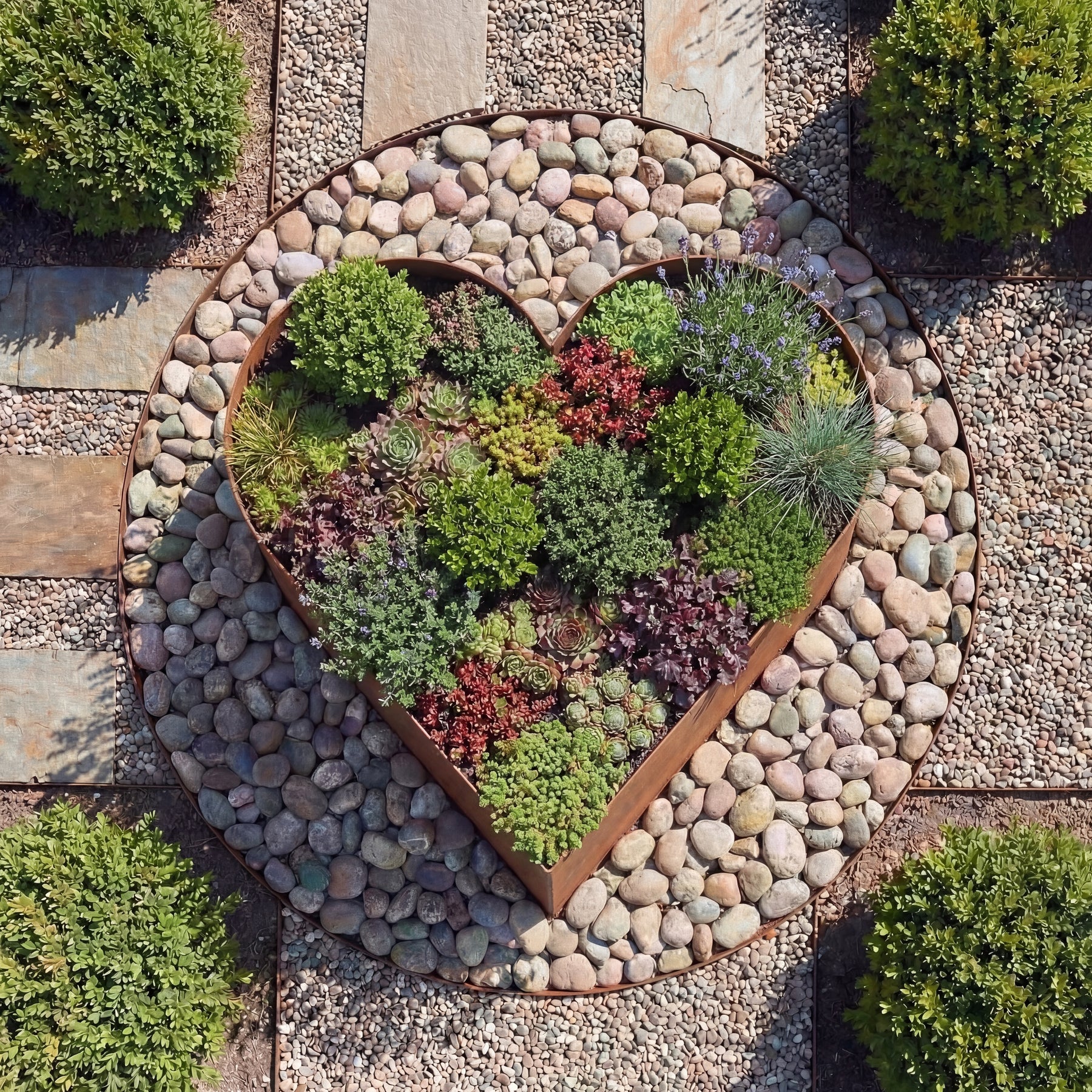 Hjerteformet bed udført i 3mm cortenstål. Hjertet er valset og fuldsvejset i top og bund så det holder sin form. Hjertet leveres i rå cortenstål, men ruster efter kort tid.