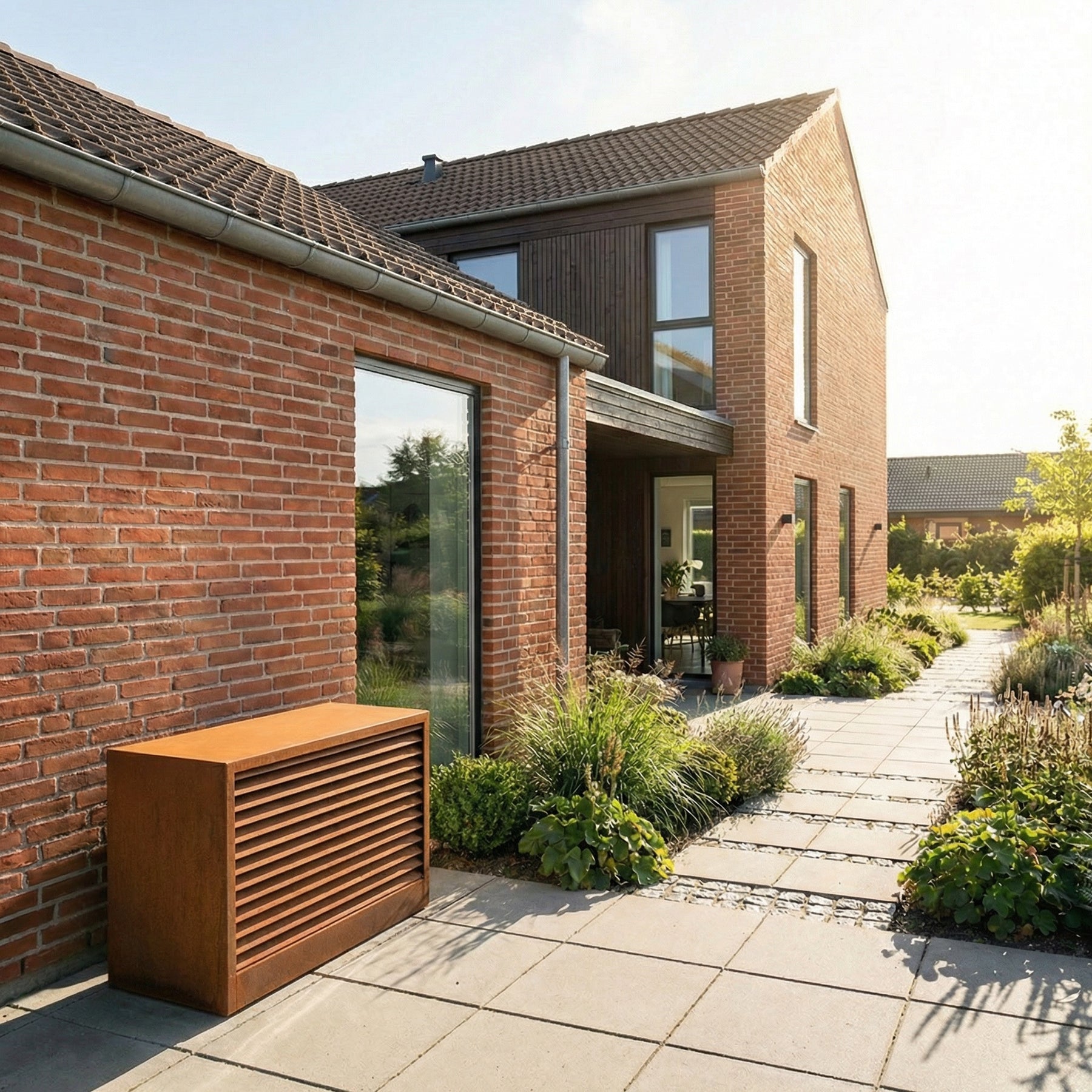 Varmepumpeskjuler i cortenstål riflet model