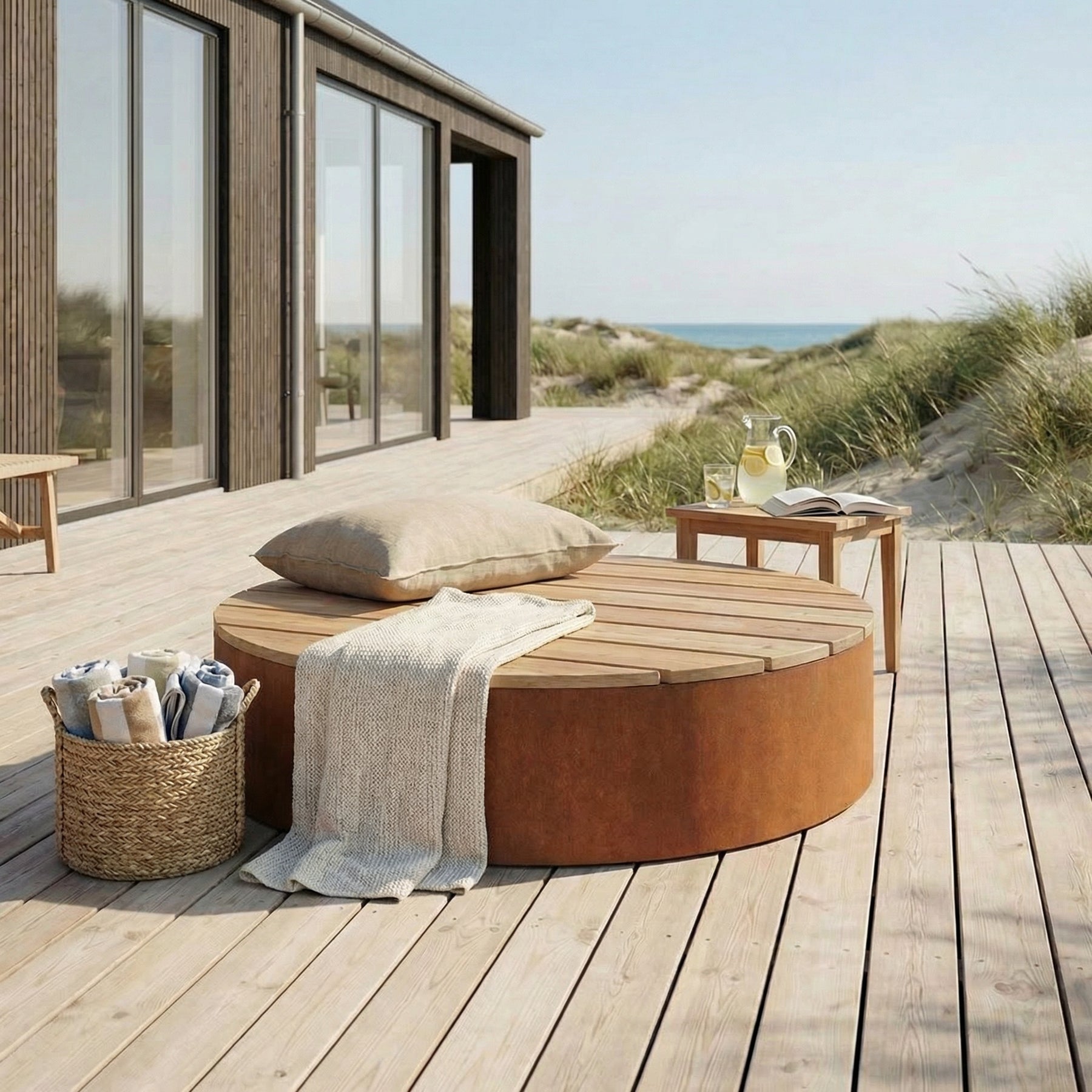 Rund bænk/platform i cortenstål